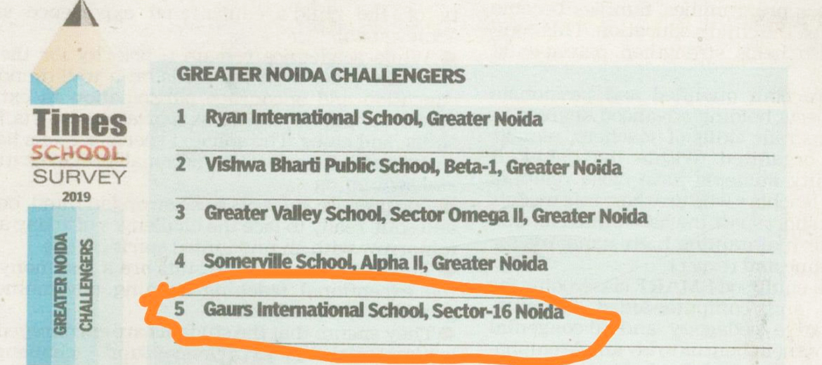 Gaurs International School has been ranked 5th among the Greater Noida challenger schools by Times of India.